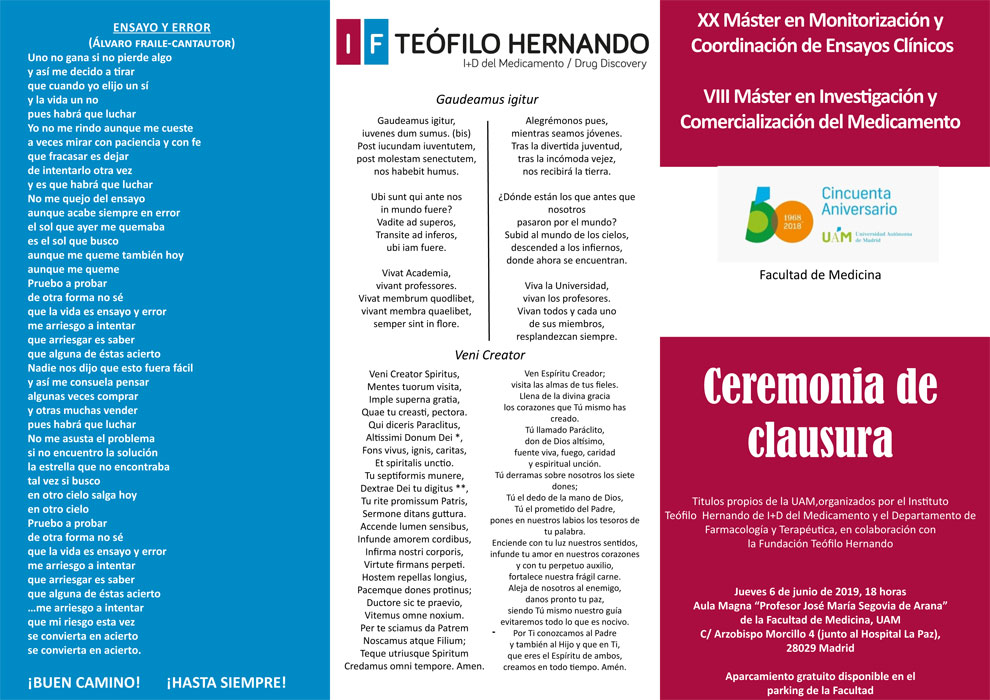 Este mismo día, el Coro del Hospital La Princesa también participará en el Acto de Clausura de Másteres organizados por el Instituto Teófilo Hernando, en el Aula Magna de la Facultad de Medicina.
