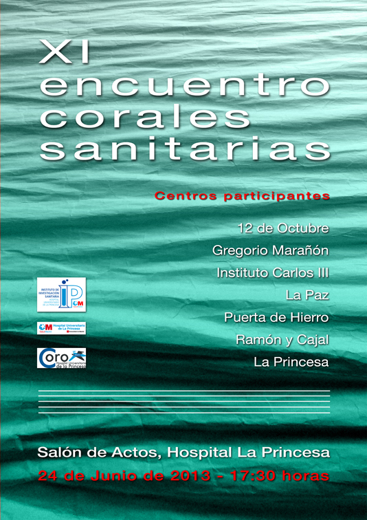 El lunes 24 de Junio, a las 17,30 h., se celebra en el Salón de Actos del Hospital Universitario de La Princesa el XI ENCUENTRO DE CORALES SANITARIAS DE MADRID .