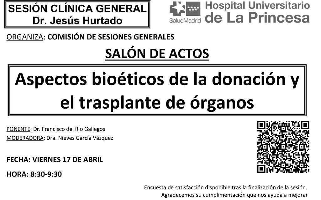 Sesión Clínica 17 de abril – Aspectos bioéticos de la donación y el trasplante de órganos Publicado por Ahúpa | 17/04/2026 | Actividades, Conferencias | 0 | Nueva sesión de este viernes de 8:30 a 9:30 –