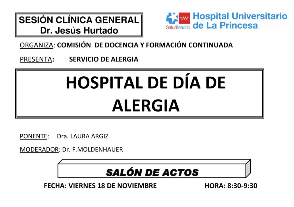 Sesión Clínica 18 de Noviembre – Hospital de día de alergia Publicado por Ahúpa | 18/11/2016 | Actividades, Conferencias | 0 | No os perdáis la nueva sesión de este viernes a las 8:30 en el salón de actos.