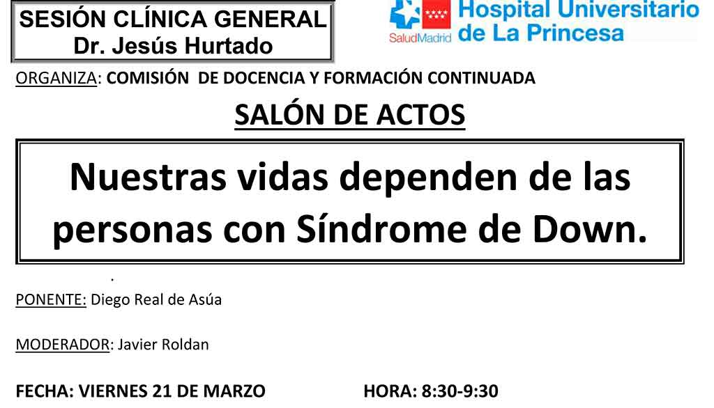 Sesión Clínica 21 de marzo – Nuestras vidas dependen de las personas con Síndrome de Down Publicado por Ahúpa | 21/03/2025 | Actividades, Conferencias | 0 | Nueva sesión de este viernes de 8:30 a 9:30 –