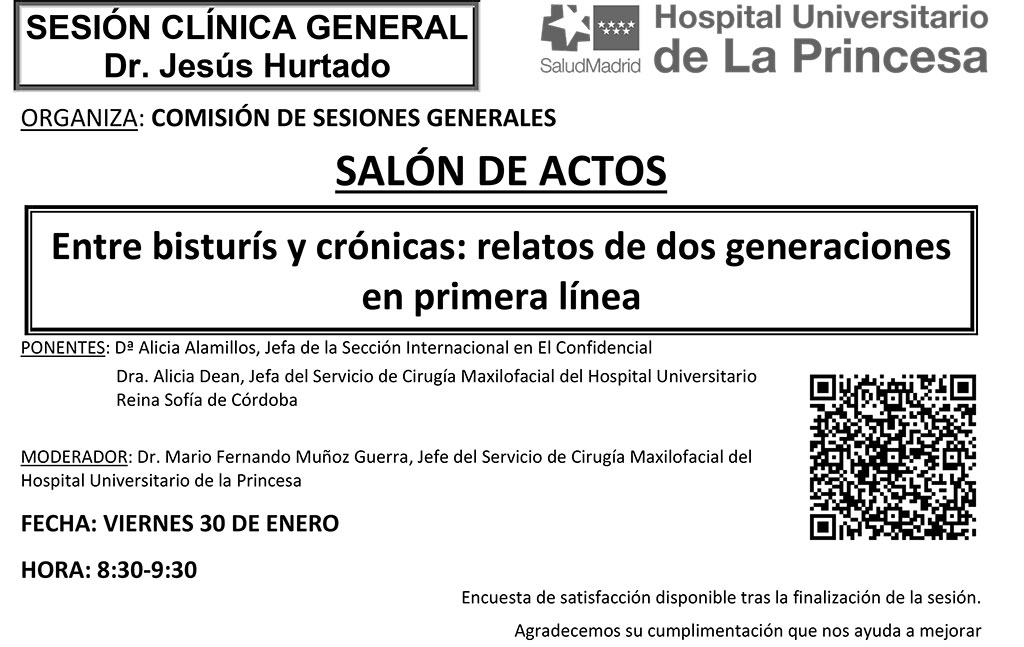 Sesión Clínica 30 de enero – Entre bisturís y crónicas: relatos de dos generaciones en primera línea Publicado por Ahúpa | 30/01/2026 | Actividades, Conferencias | 0 | Nueva sesión de este viernes de 8:30 a 9:30 –