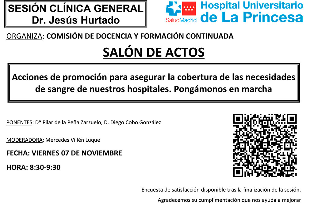 Sesión Clínica 7 de noviembre – Acciones de promoción para asegurar la cobertura de las necesidades de sangre de nuestros hospitales. Pongámonos en marcha Publicado por Ahúpa | 04/11/2025 | Actividades, Conferencias | 0 | Nueva sesión de este viernes de 8:30 a 9:30 –